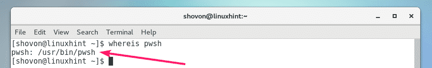 As you can see, the path of the pwsh command is /usr/bin/pwsh. Remember it.