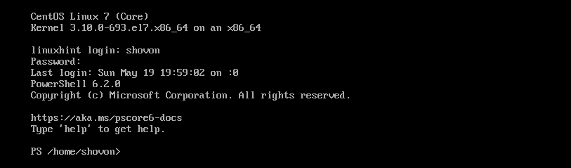As you can see, when I login to my CentOS 7 machine, PowerShell is used as the default shell.