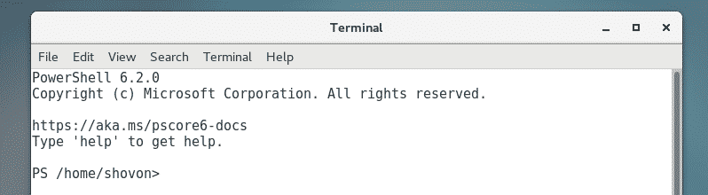 Now that PowerShell is installed, you can start it from the terminal with the following command: