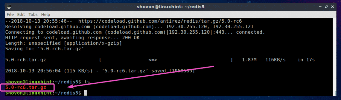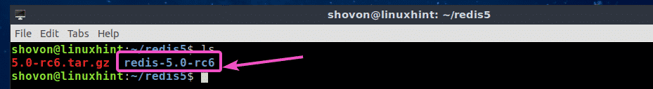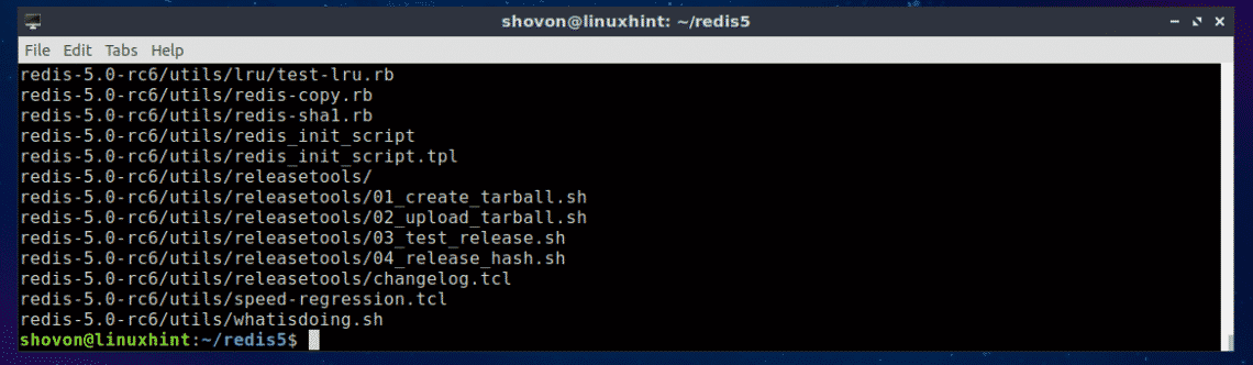 As you can see, a new directory redis-5.0-rc6/ is created.