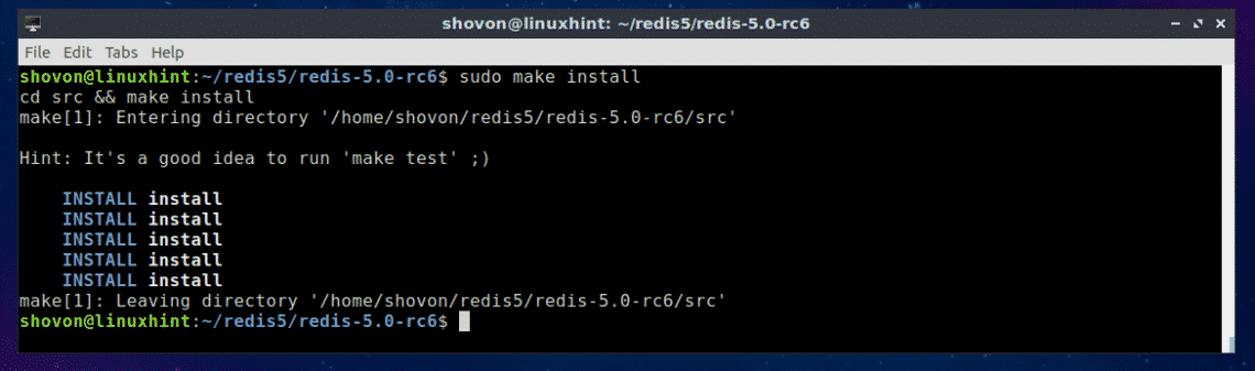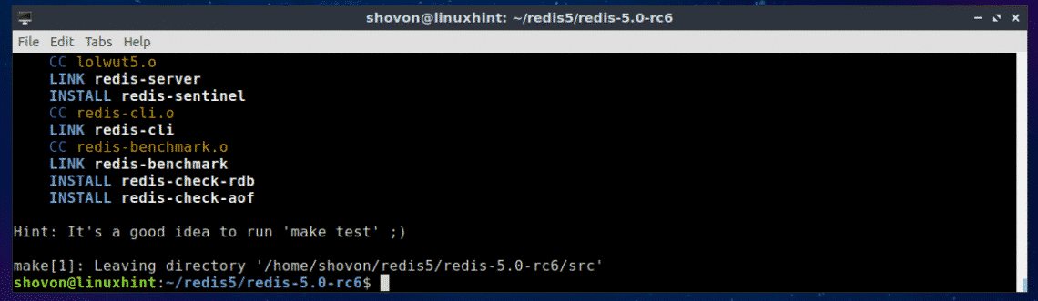 Now navigate to the redis-5.0-rc6/ directory with the following command: