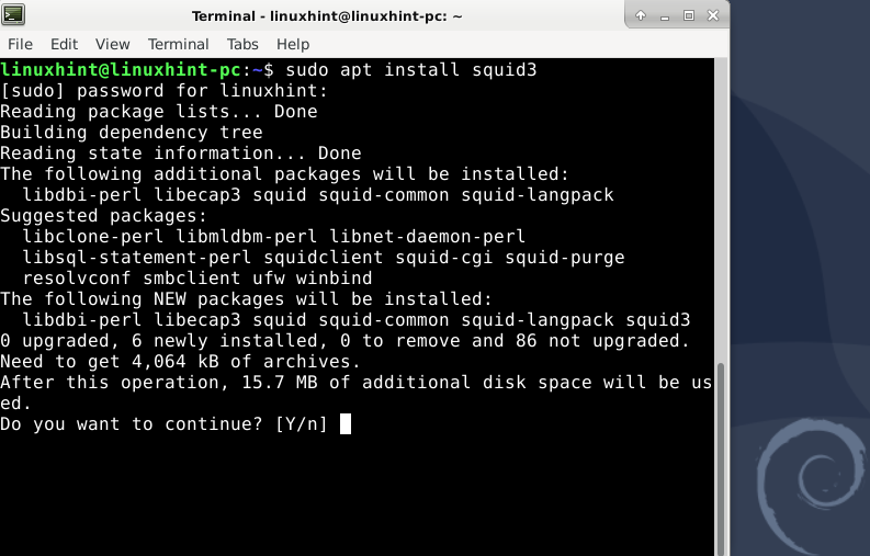 2) Now install Squid package with the following command: