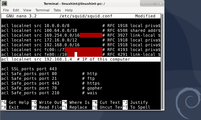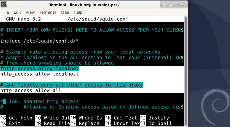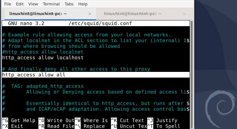 We will only allow localhost and our local network (LAN) devices to use Squid for more precise control. For this, we will change the squid.conf file as below: