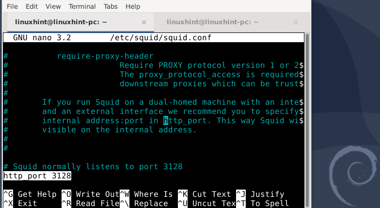 5) Now go to the line specifying the “http_port” option. It contains the port number for Squid proxy servers. The default port number is 3218. If for some reason, like port number conflict, you can change the port number to some other value as shown below: