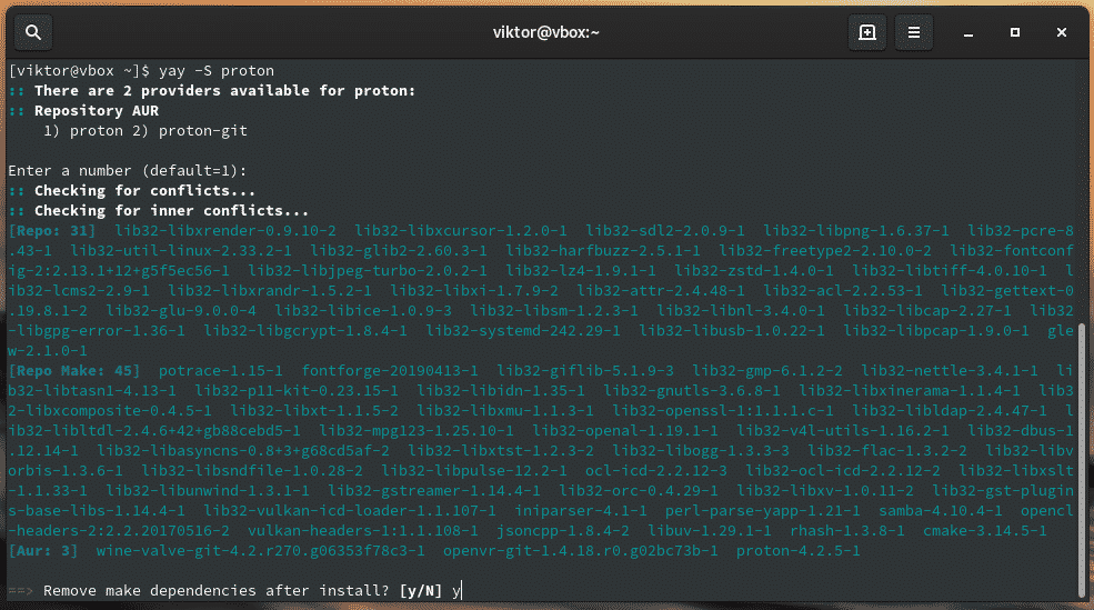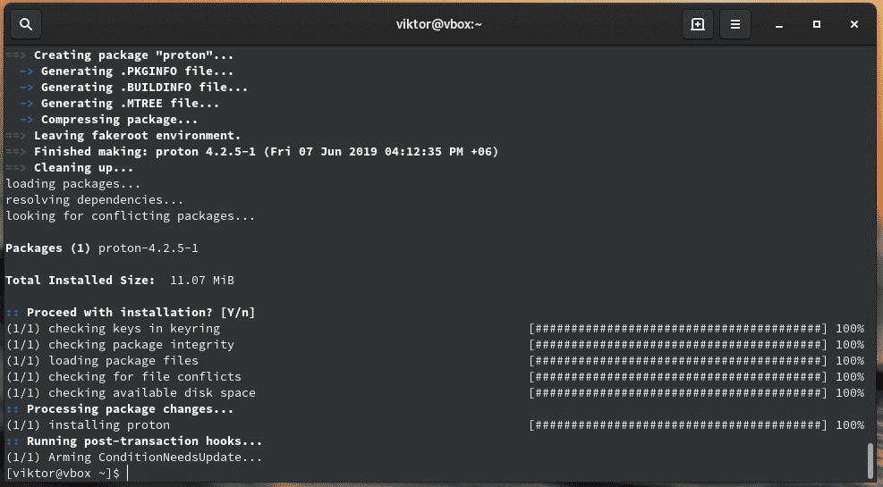 Installing Proton is quite simple. It’s directly available from AUR. It’s better to use an AUR helper for this purpose like Yay.