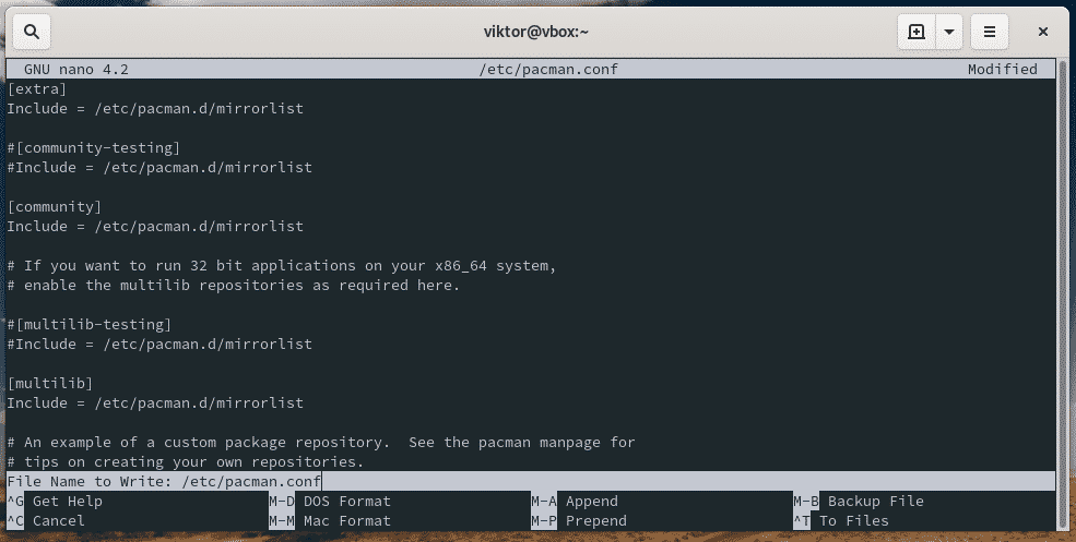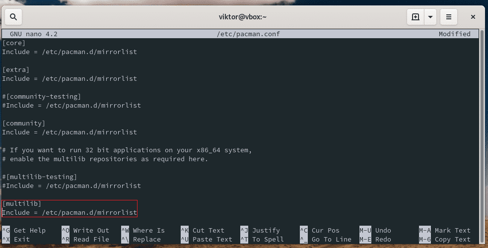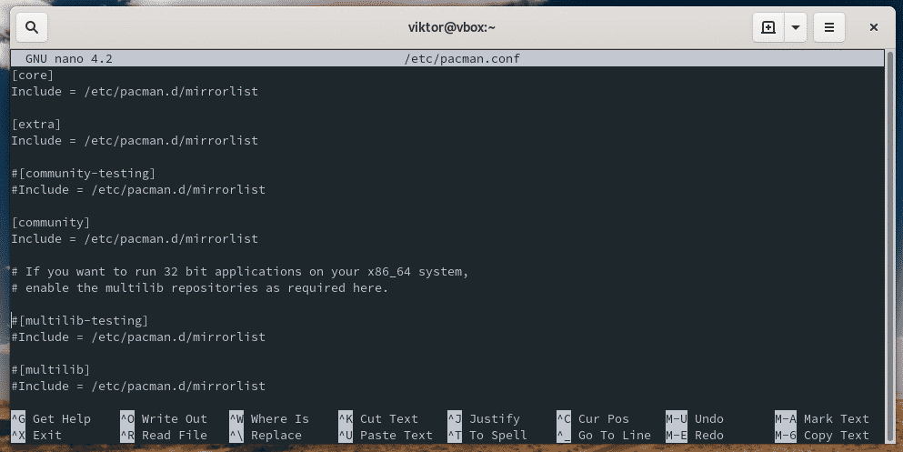 Enjoying Steam requires activating the “multilib” repository. It’s not enabled by default. We have to manually edit the “pacman.conf” file and enable multilib.