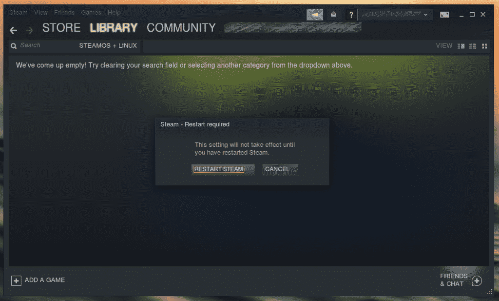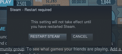 Once changed, Steam will prompt restarting the client. Restart Steam.