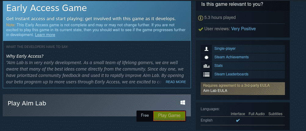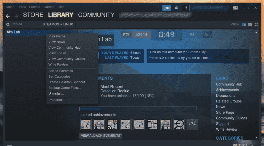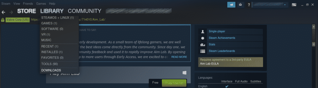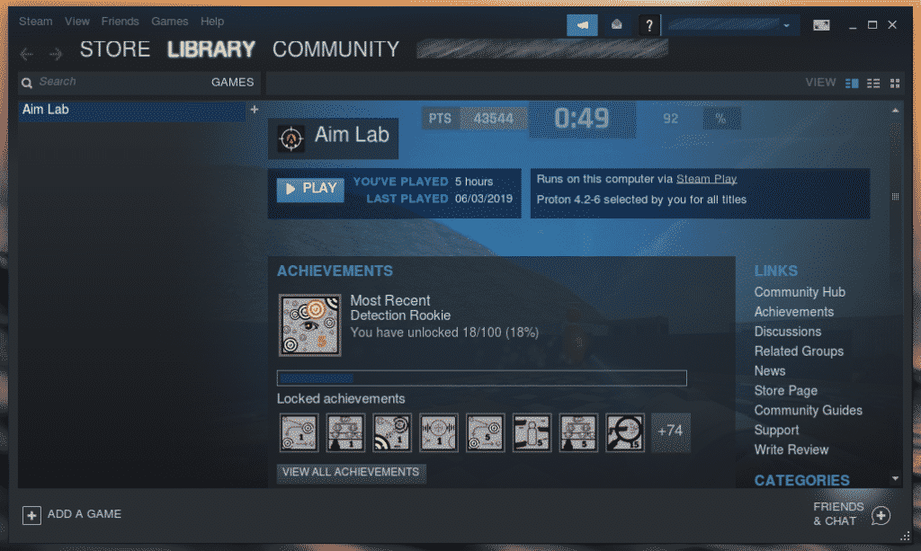 Once the download is complete, the game will be playable. In the case of Aim Lab, it’s a Windows-native game, so Proton will be in action.