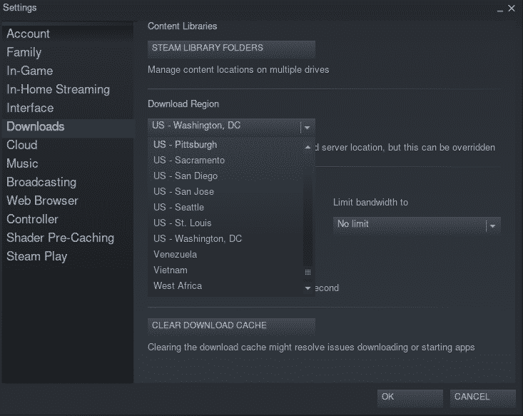 When you’re downloading a game from Steam, the client connects to one of the Steam servers. Steam has a number of servers worldwide for offering the fastest possible performance. That’s why it’s important that you choose the nearest server location for improving the game download speed.