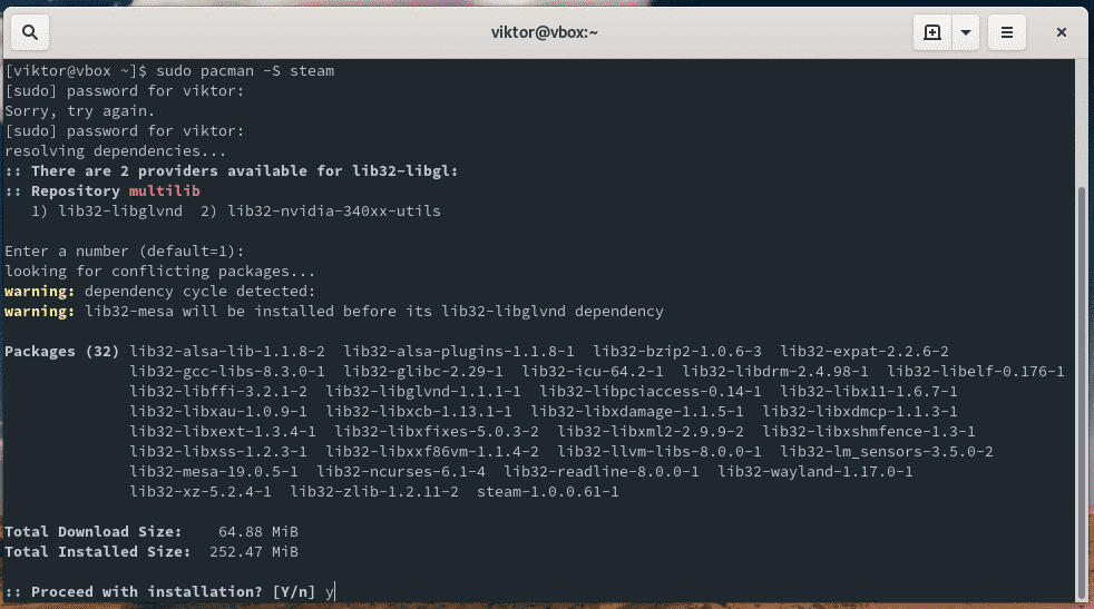 Note: For installing Steam, the previously mentioned method is more preferable.