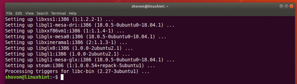 Once your computer starts, run the following command to install STEAM on your Ubuntu 18.04 LTS machine:
