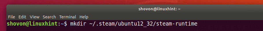 Just create a ~/.steam/ubuntu12_32/steam-runtime directory in your login user’s HOME directory with the following command: