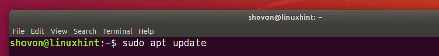 Now open up a Terminal and run the following command to update the APT package repository cache of your Ubuntu 18.04 LTS machine: