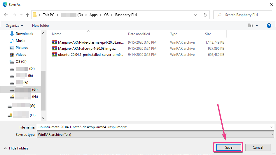 Your browser should ask for a location (directory) where you want to save the Ubuntu MATE Raspberry Pi image. Select a directory and click on Save.