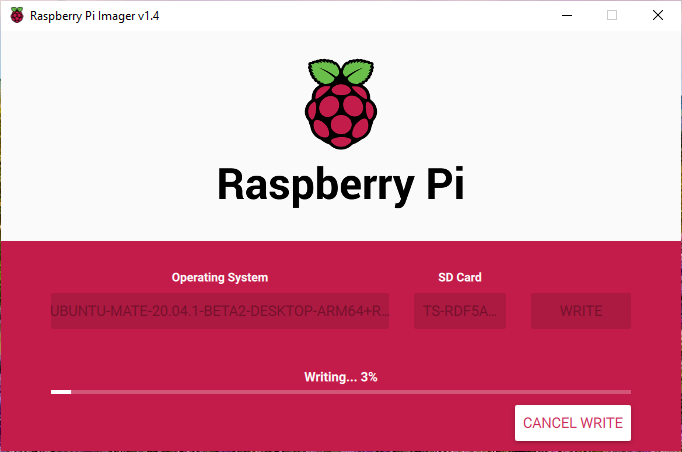Raspberry Pi Imager should start flashing the Ubuntu MATE 20.04.1 Raspberry Pi image on the microSD card. It may take a while to complete.