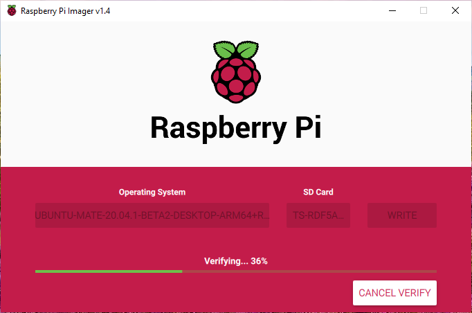 Once the Ubuntu MATE 20.04.1 Raspberry Pi image is written on the microSD card, Raspberry Pi Imager will check the microSD card for write errors. It may take a while to complete.