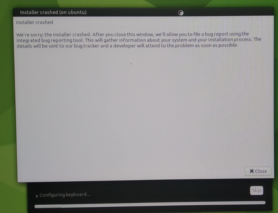 While Ubuntu MATE 20.04.1 LTS is being configured, you may see the following error message.