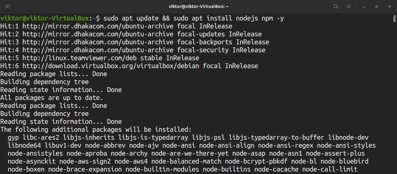 The installation is super simple. Update the APT cache and install Node.js along with npm (Node Package Manager).