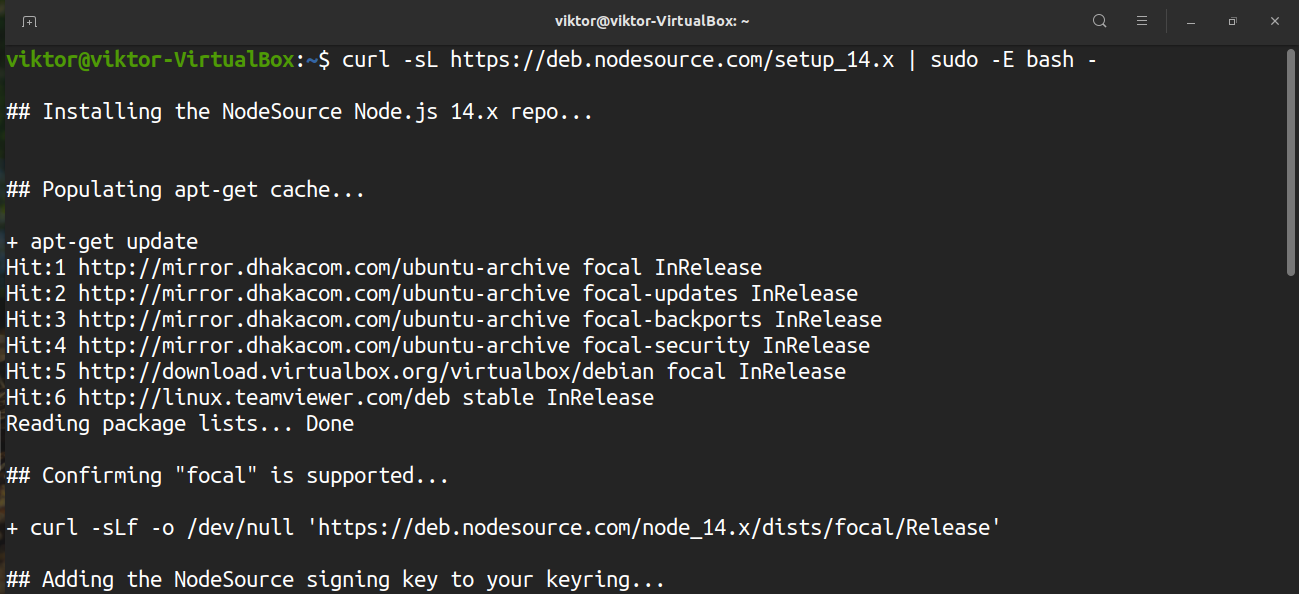 Voila! NodeSource PPA for Node.js v14 is successfully configured! Install Node.js.