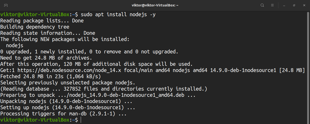 This is the default method of installing Node.js on Ubuntu. For most of the users, this will be more than enough. The only downside is, you may not get the latest version of Node.js.