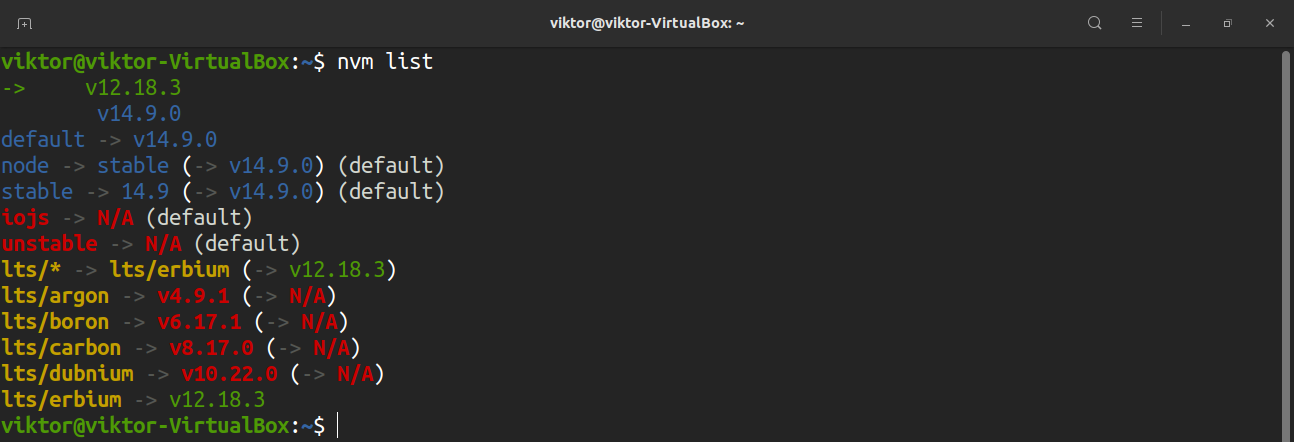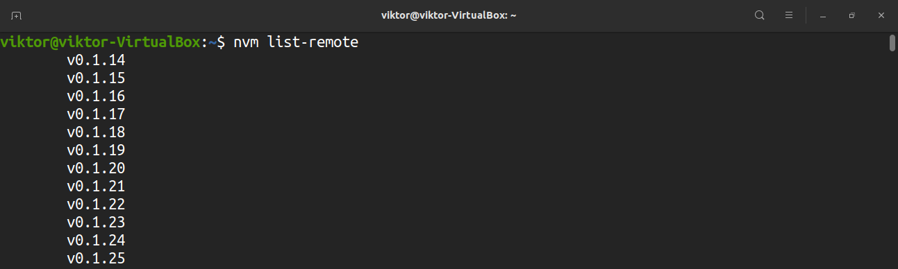 It’s time to use nvm. First, check out the available versions of Node.js. This will print out a long list.