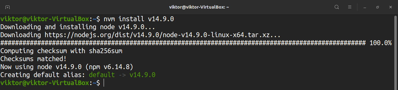 To install the desired version, use the following command. In this example, the command will install Node.js v14.9.0.