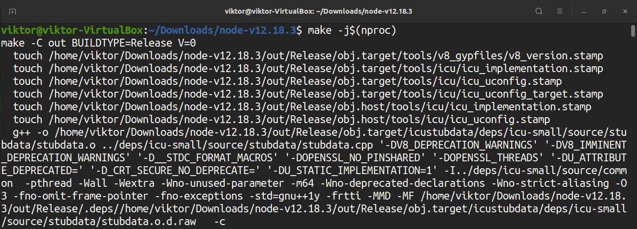Start the compilation process. The “-j” is to run make in multithread mode. The “nproc” part is to tell the number of available CPU cores.