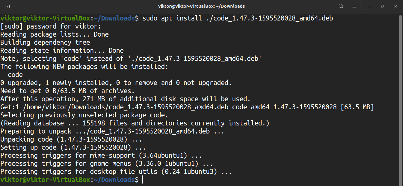 This is the standard method for installing VS Code. The text editor is officially available as a DEB package for Debian/Ubuntu and related distros.