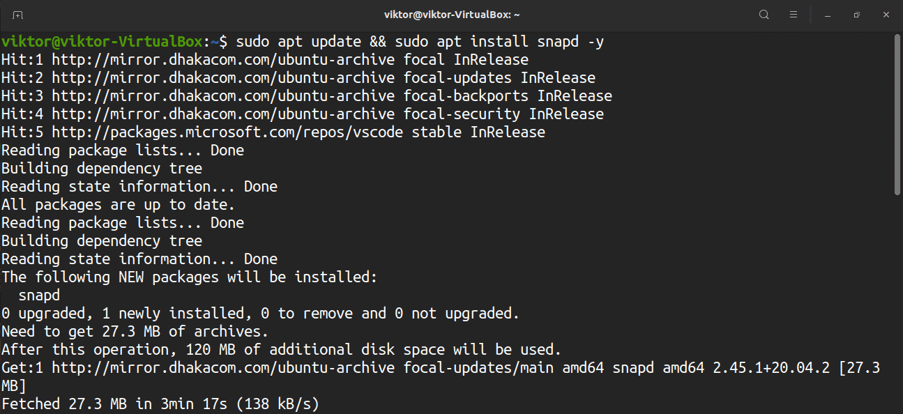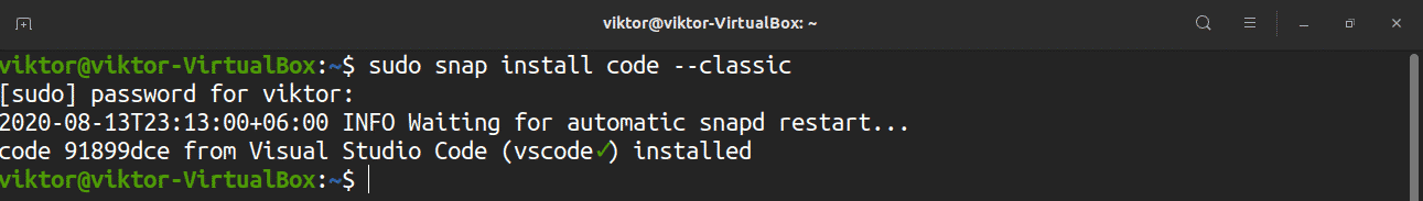 The VS Code snap package is officially distributed and maintained by Microsoft. In the case of Ubuntu 20.04, the snap service comes pre-installed. If you do not have it installed for some reason, you can quickly install it now.