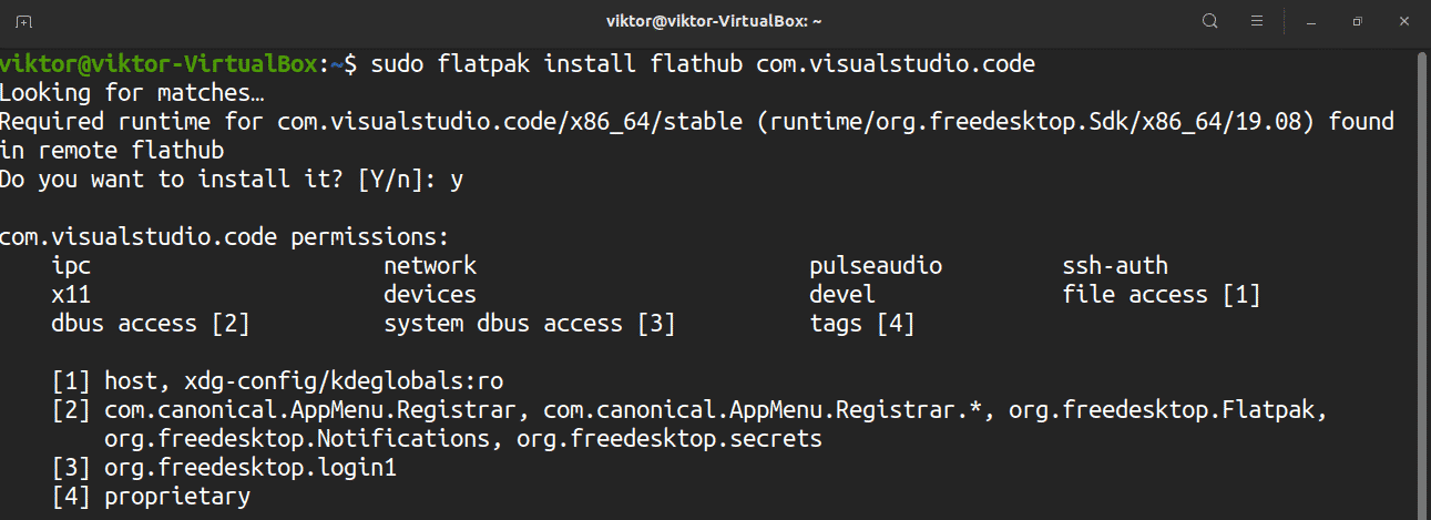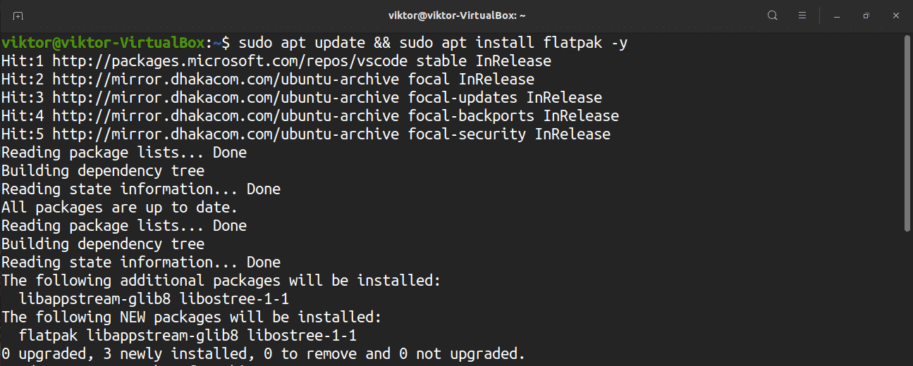 In the case of Ubuntu 20.04, unlike snap, flatpak does not come pre-installed. If you already have flatpak installed, then you can immediately proceed to the section for installing the VS Code flatpak. If not, then continue to follow along.