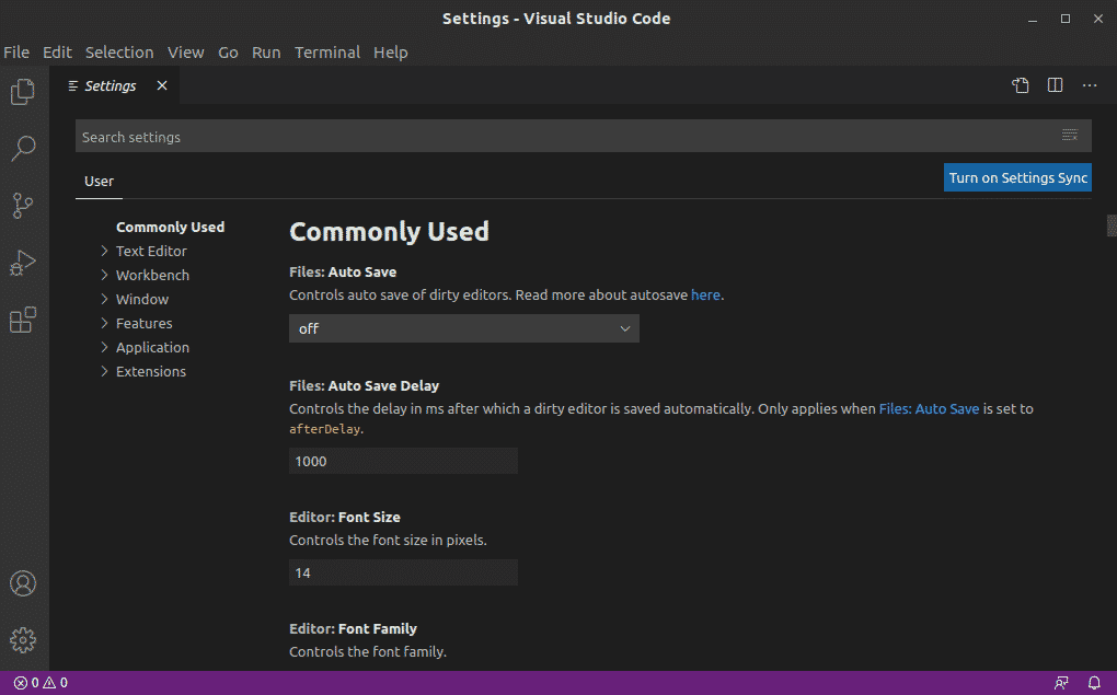 To make changes to how the editor behaves, check out the VS Code ‘Settings’ section.
