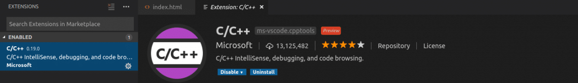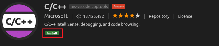 For example, here’s the C/C++ extension. Simply click the “Install” button.