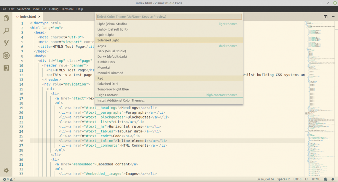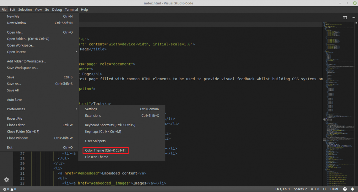 Need to change the view? Don’t worry! Visual Studio Code comes up with a number of available color themes. Go to File >> Preferences >> Color Theme or use the shortcut “Ctrl + K + T”.
