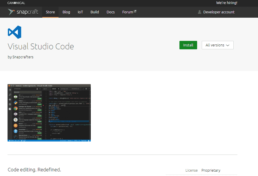 Visual Studio Code is also available as a snap package. Check out Visual Studio Code on Snapcraft store.