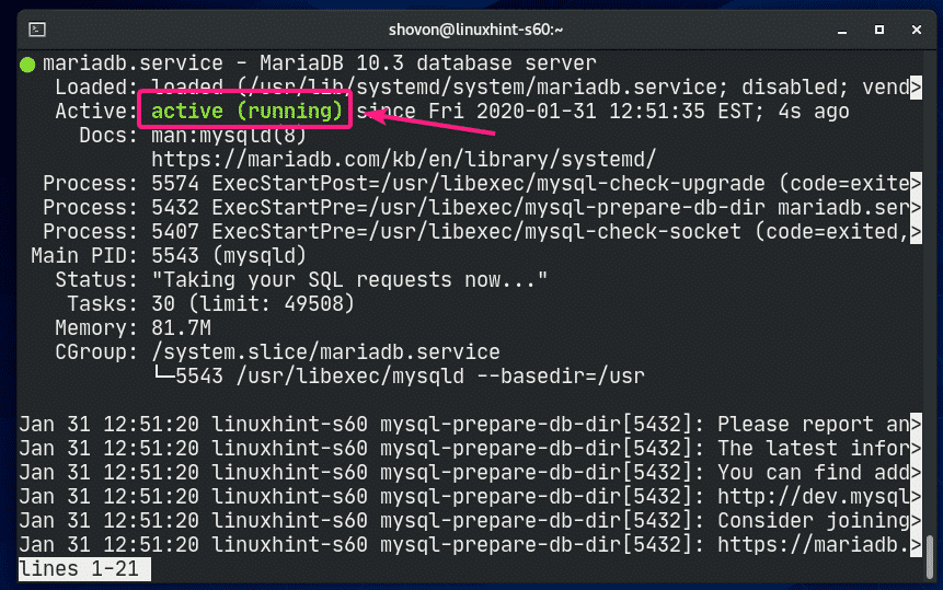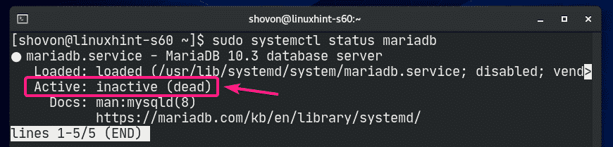 mariadb service won’t be running (inactive) by default on CentOS 8.
