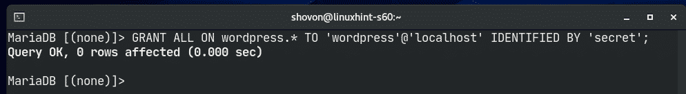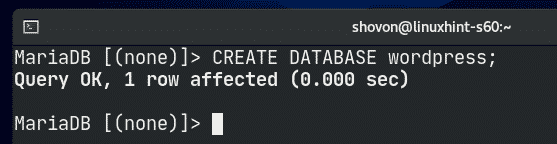 Now, create a new MariaDB database wordpress with the following SQL statement: