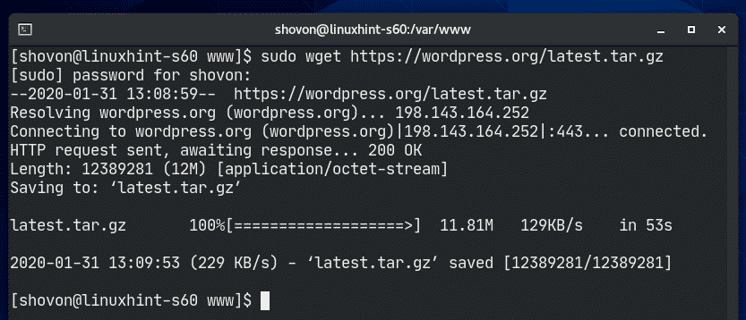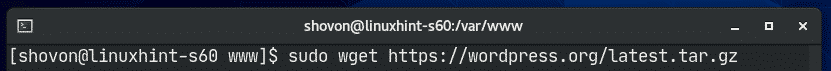 Now, download the latest WordPress archive from the official website of WordPress with the following command: