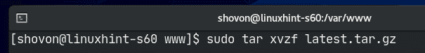 Now, extract the WordPress archive file latest.tar.gz with the following command: