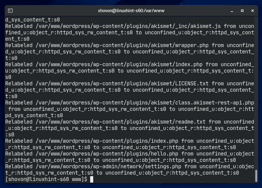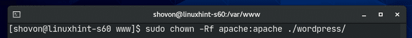Now, change the owner and group of the wordpress/ directory and its contents to apache as follows: