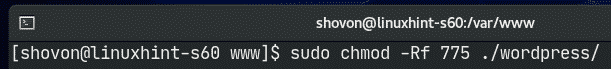 Now, change the permission or the wordpress/ directory and its content to 775 as follows: