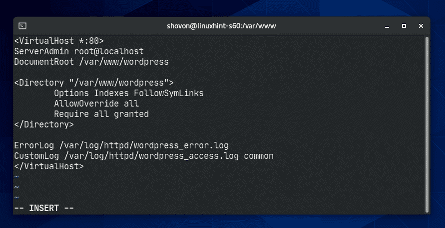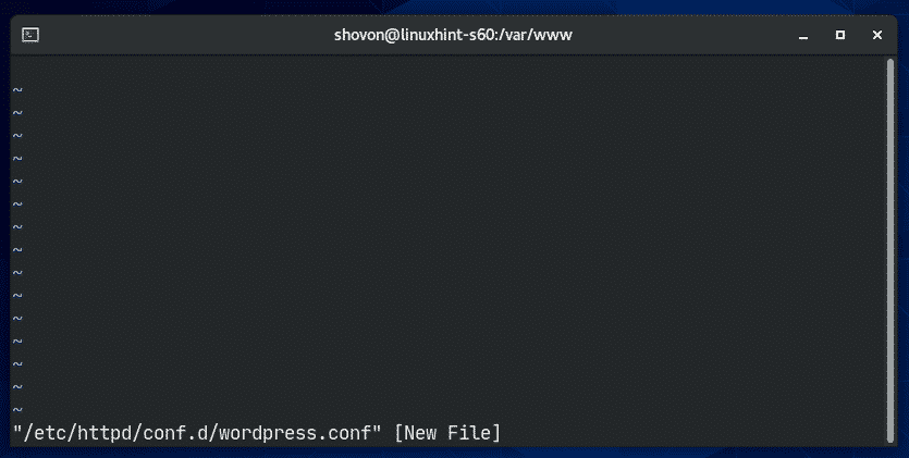 Finally, the wordpress.conf file should look as shown in the screenshot below.