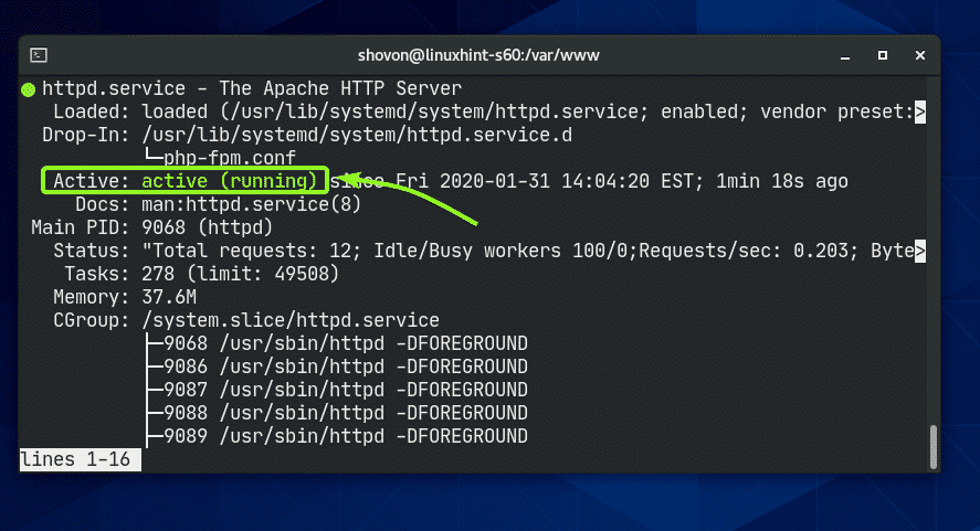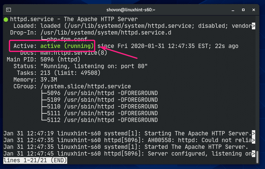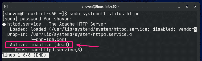 Apache httpd service won’t be running (inactive) by default on CentOS 8.