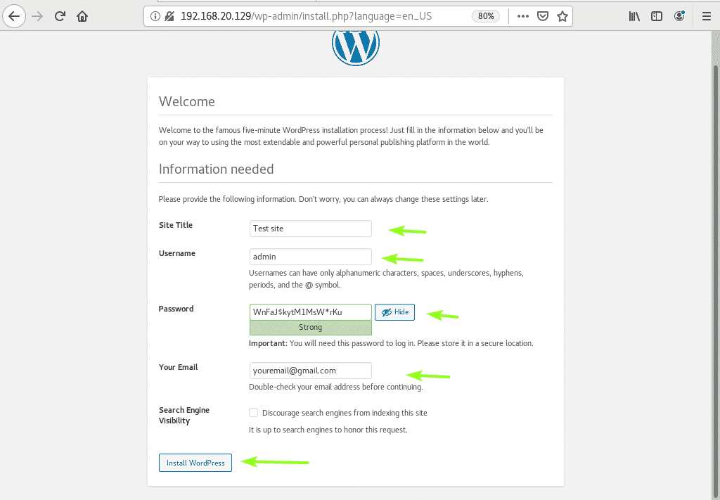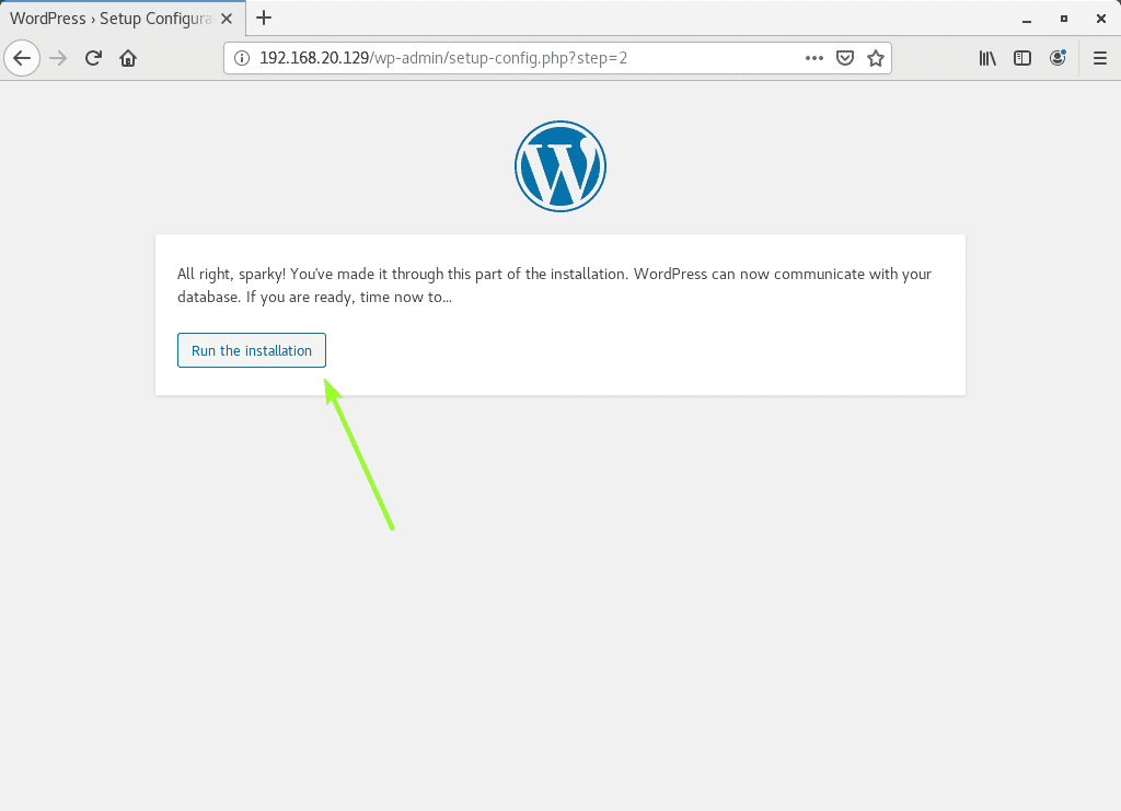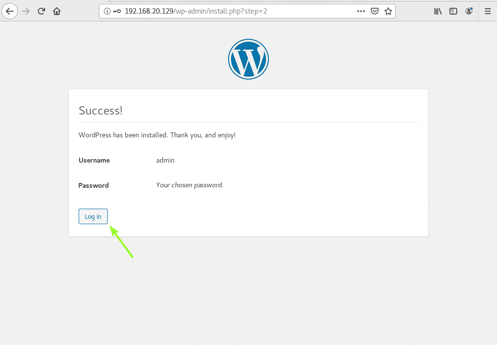In order to access WordPress installed on your CentOS 8 machine, you must know the IP address or domain name of your CentOS 8 machine.