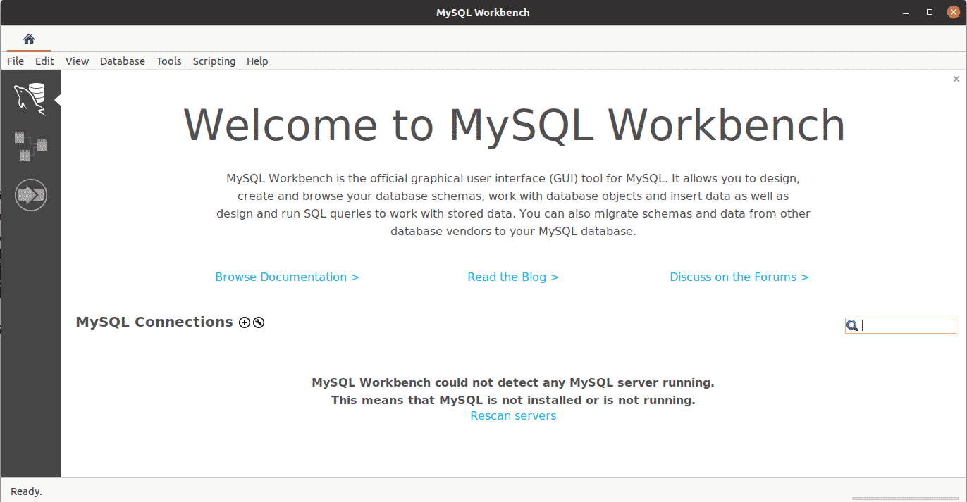 Step 3: Launch the MySQL workbench on your Ubuntu system.