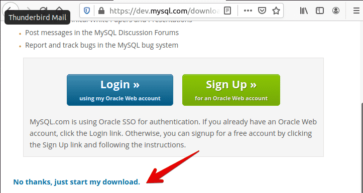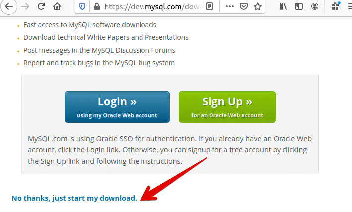 On the next page, it will ask you either you want to register or log in. If you don’t want to select these options then, click ‘No thanks, just start my download’ link to download the required package to your system’s local directory.