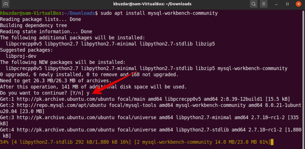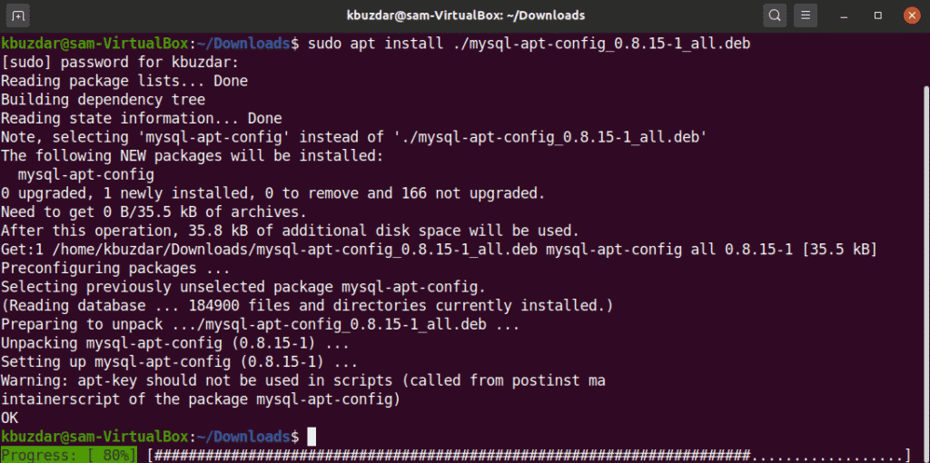 Now, it’s time to install MySQL workbench using the apt repository. To do that, execute the following command to install MySQL workbench.