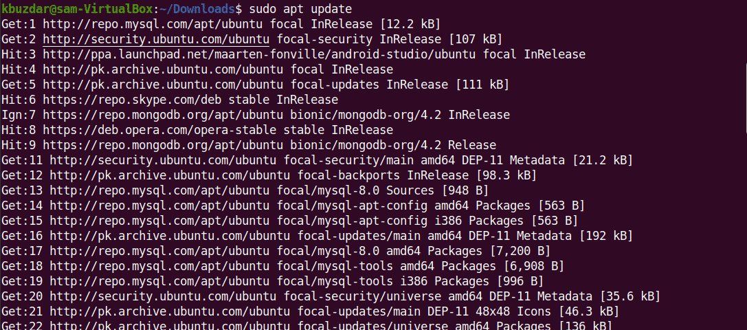 Use the following command to add MySQL repository URLs in the apt sources list so that you can install the software on your Ubuntu 20.04 system.