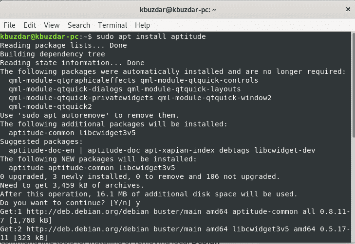 The aptitude is a package manager that is similar to apt. It offers to download and install packages using the terminal. It has an interactive mode through which you can see the complete status of install and remove packages. Aptitude package manager’s options are quite similar to apt and use the same repositories as apt does. To see the interaction mode, you will use just an aptitude command without any options in the terminal.