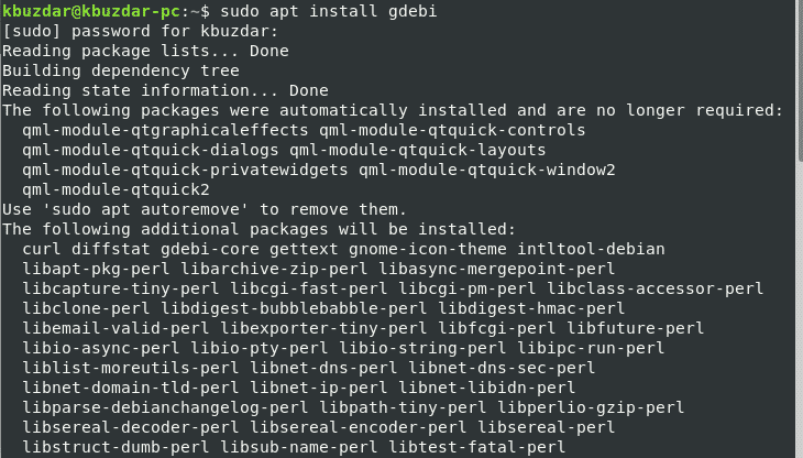 Once the installation is complete, you can install any package using this tool. Execute the following command to install a package using the gdebi package manager.