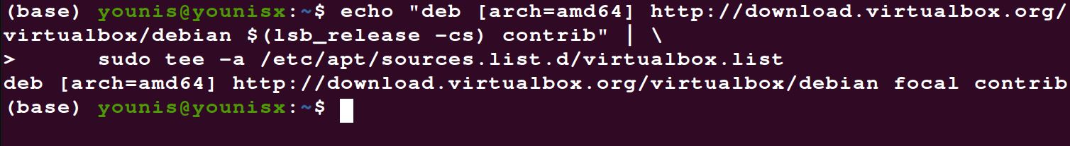 $(lsb_release -cs) contrib" | \ sudo tee -a /etc/apt/sources.list.d/virtualbox.list